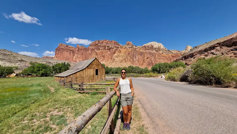 En esta misma zona encontraremos dos puntos de interés que merecen una breve parada, así, además de conseguir una de las fotos más famosas del Parque Nacional, también podremos ver cómo se vivía antiguamente. Por una parte, tenemos Fruita Barn, un antiguo granero que se ha convertido en el edificio más famoso del parque, y muy cerca, Gifford Homestead, la antigua escuela donde parece que el tiempo se ha detenido. Están muy cerca el uno del otro y podréis ir a pie, dejando el coche en el parking que hay justo al lado