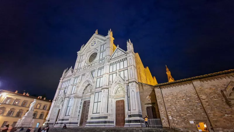 Esta bonita plaza de Florencia está rodeada de grandes palacios y edificios, como la Iglesia de Santa Croce. Esta basílica es un lugar histórico y lleno de arte en Florencia, no puedes dejar de visitar la Basílica franciscana neogótica. Además de ser hermosa, esta basílica tiene frescos de Giotto y las tumbas de dos gigantes de la historia, Miguel Ángel y Galileo Galilei.